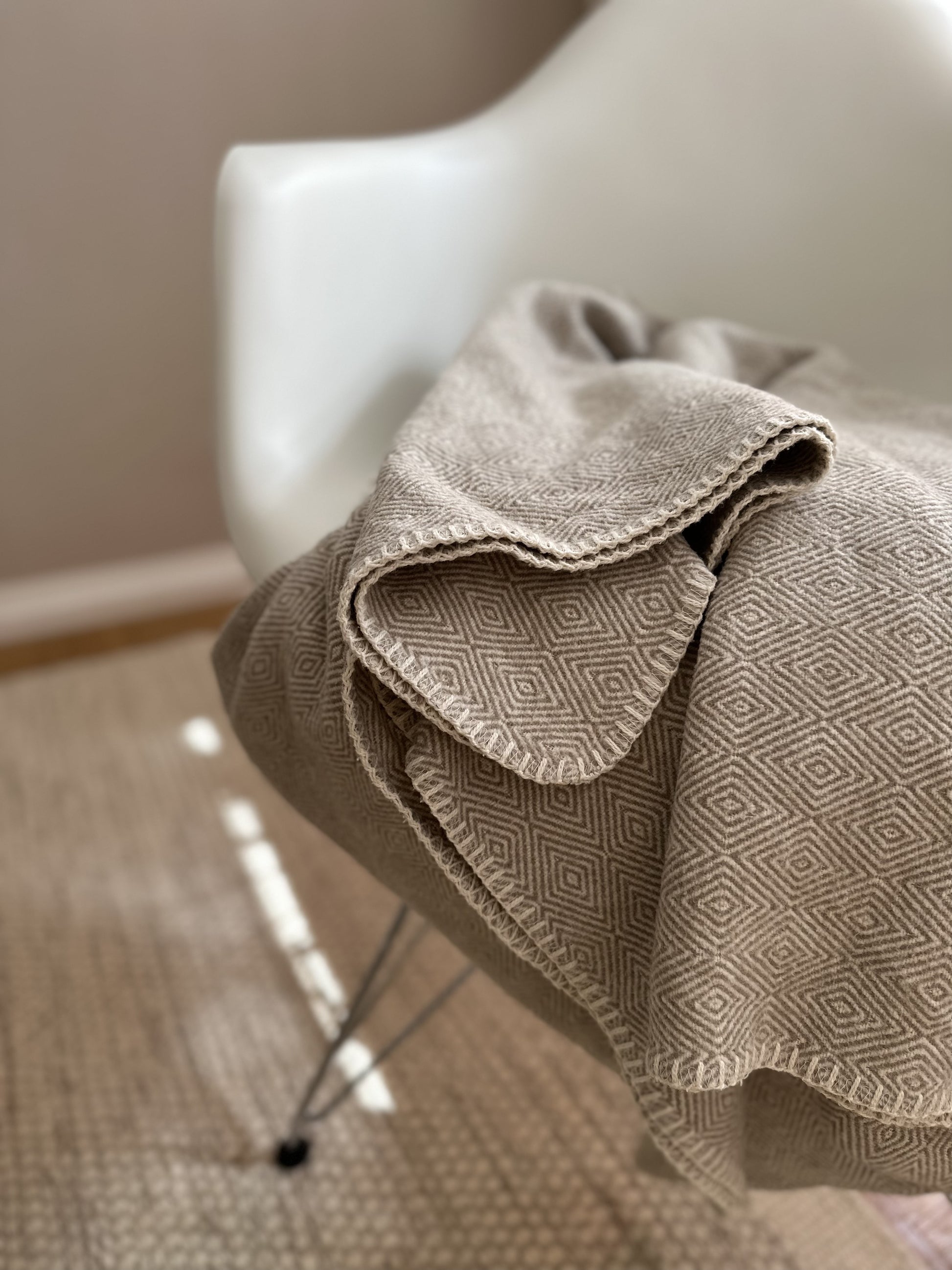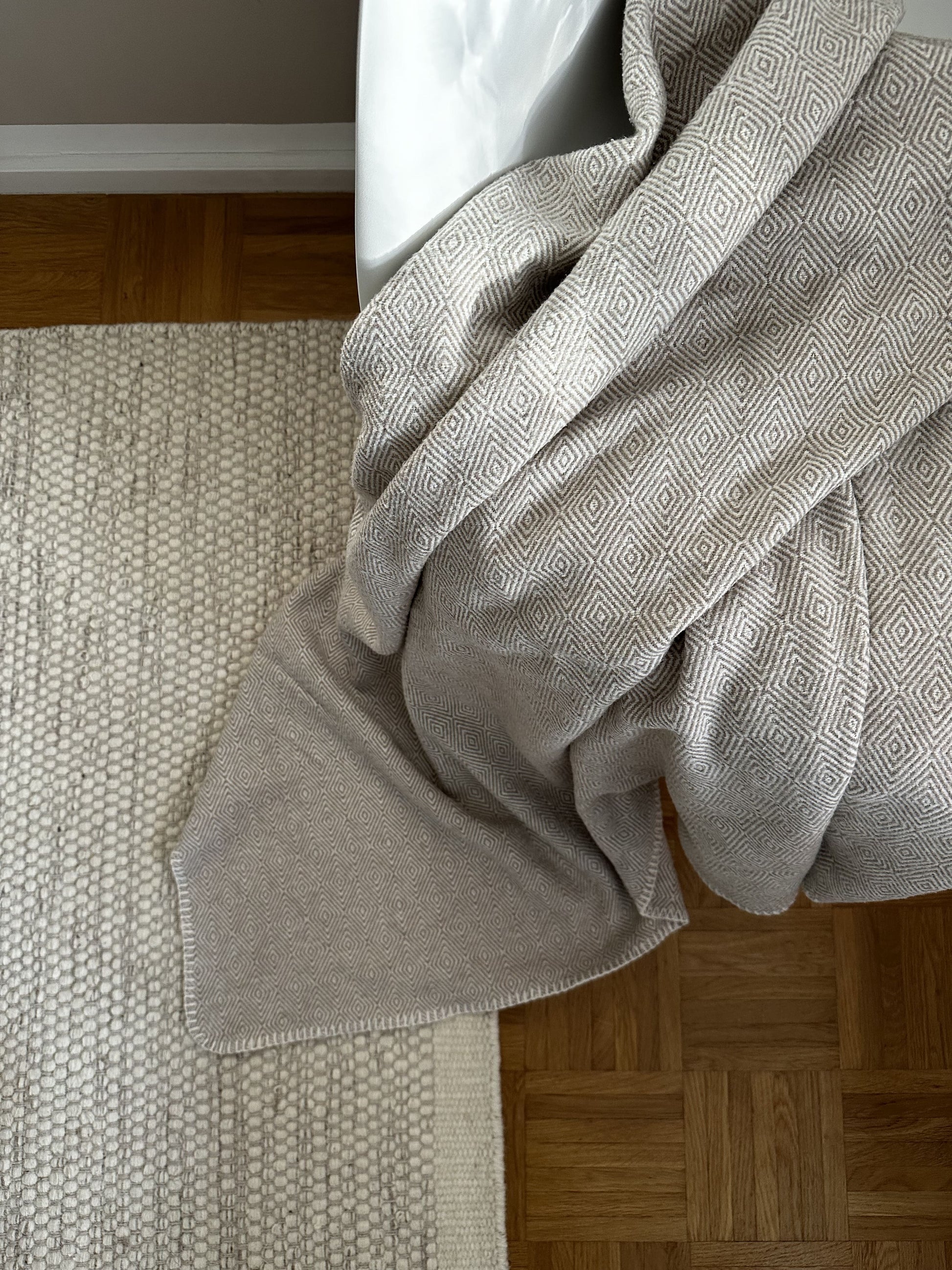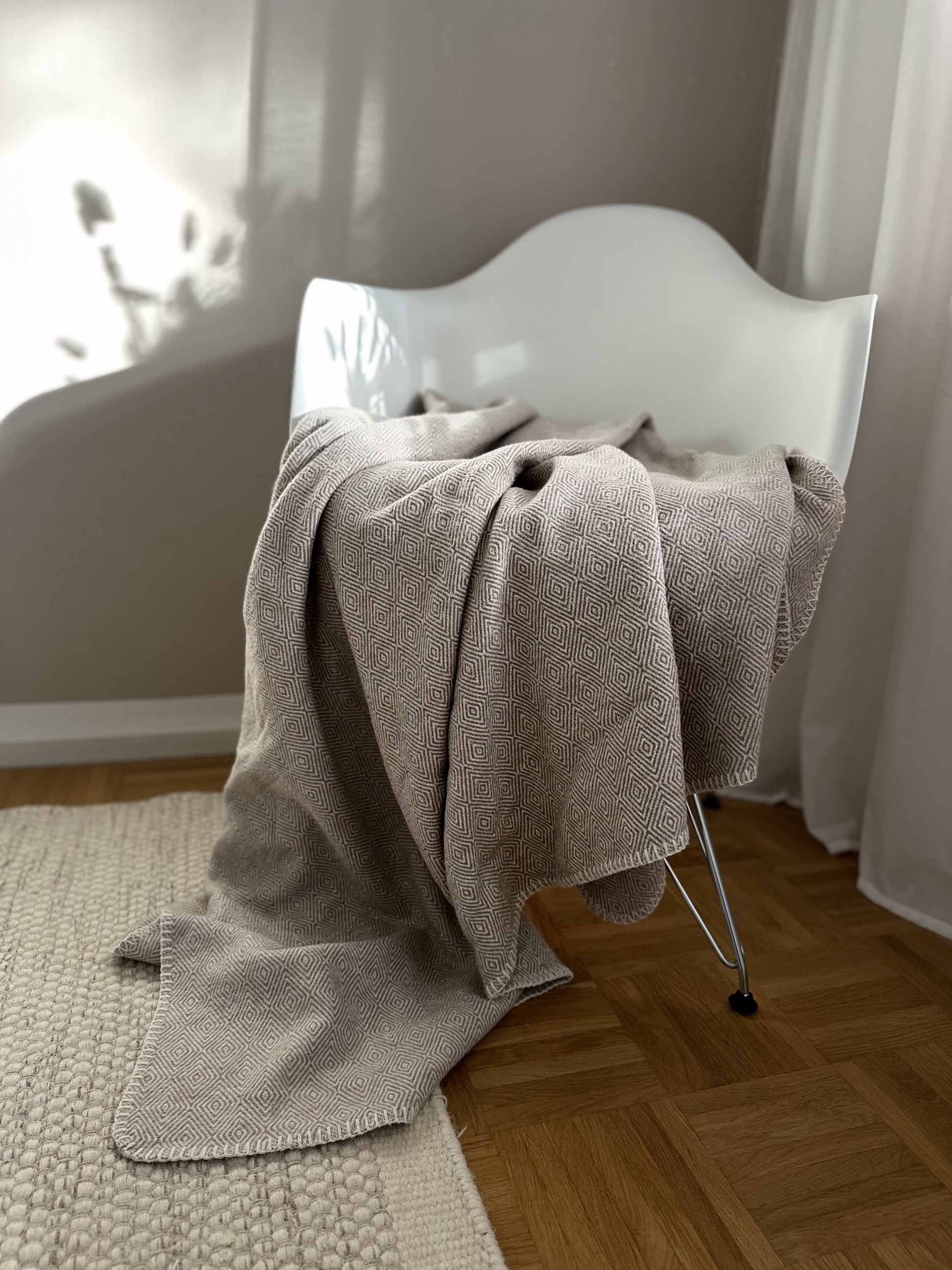 Der Kopenhagen Kolter steht für Ruhe in ihrer reinsten Form. Sein feines Rautenmuster erinnert an dänische Textiltradition, übersetzt in moderne Nachhaltigkeit. Er fügt sich harmonisch in jeden Wohnstil ein - von Urban Loft bis Hygge Home - und schafft sofort eine Atmosphäre von Wärme und Achtsamkeit.