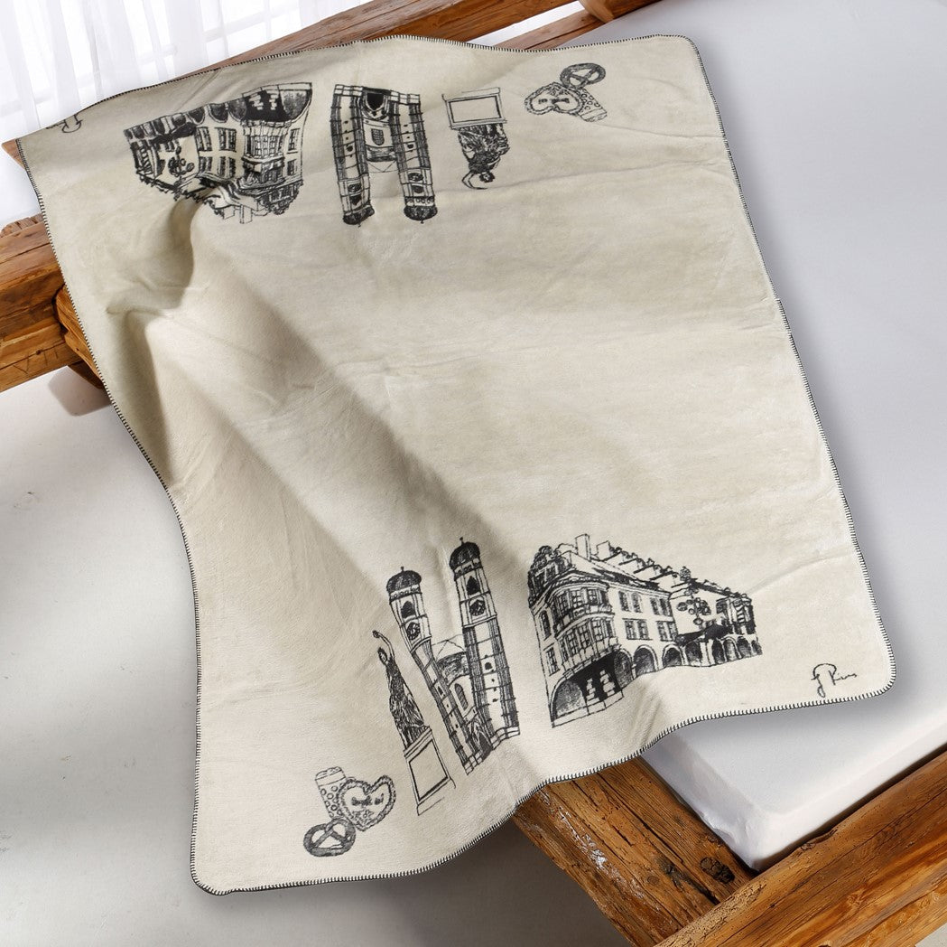 Der München Kolter ist mehr als eine Decke – er ist ein Stück gewebte Heimat. Jedes Motiv wird nicht gedruckt, sondern Faden für Faden gewebt. Das Design vereint Münchens Wahrzeichen mit feinster Handwerkskunst – Made in Germany und gemacht für Generationen.